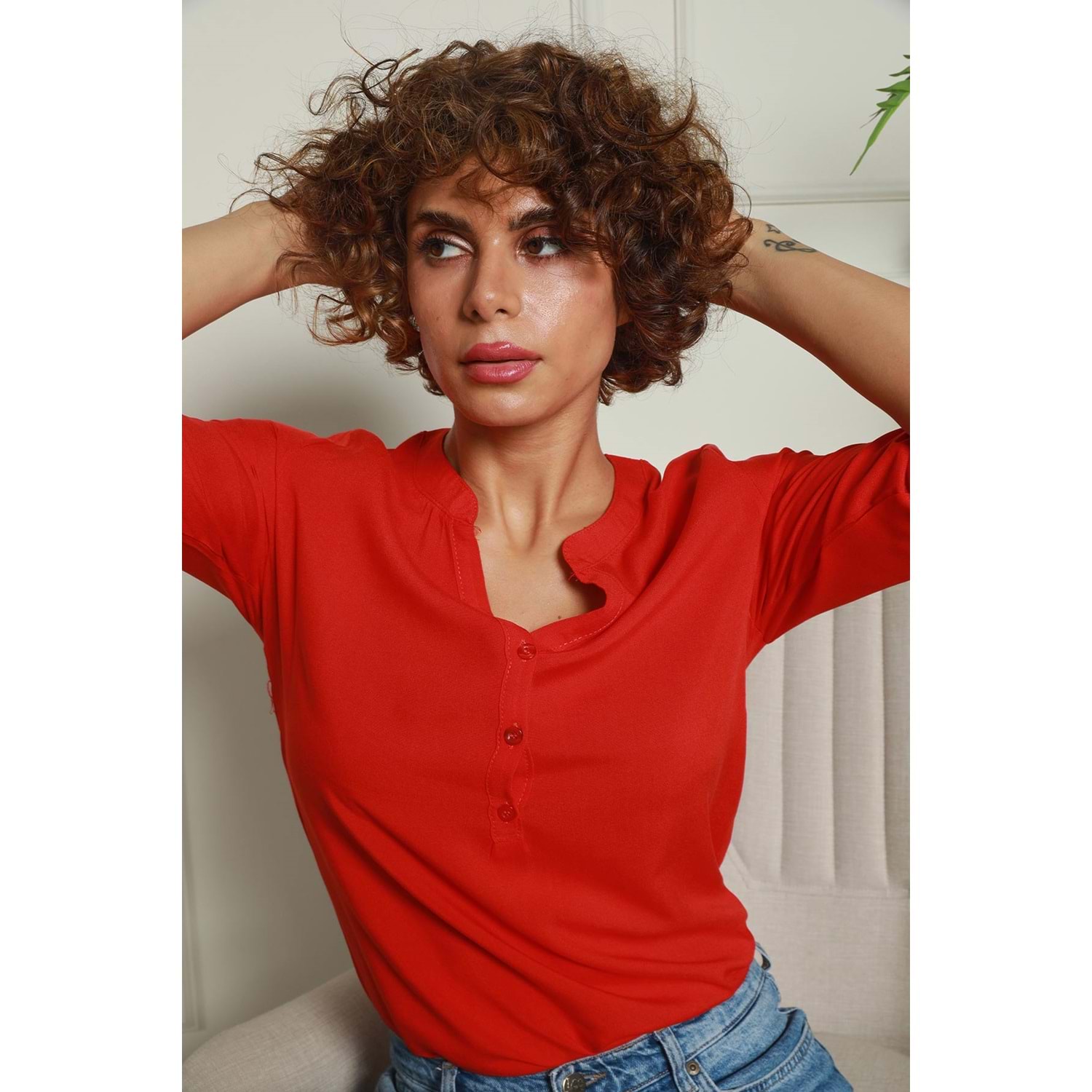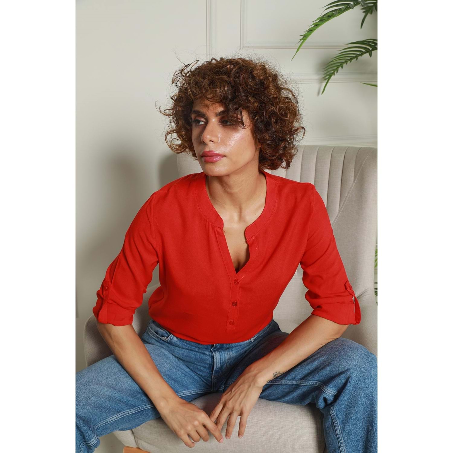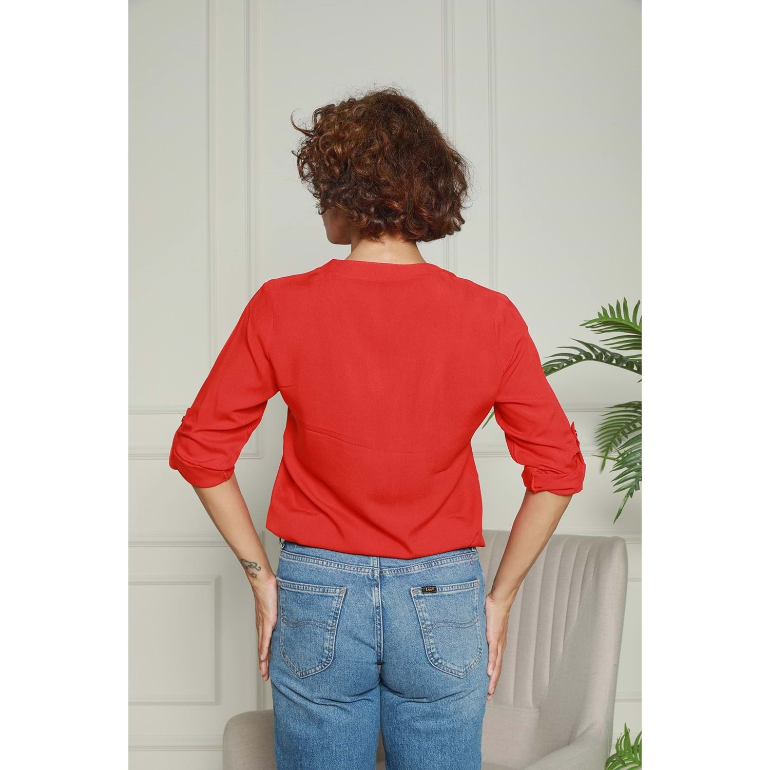 Kırmızı Hakim Yaka Yarım Patlı Viskon Gömlek 1500064