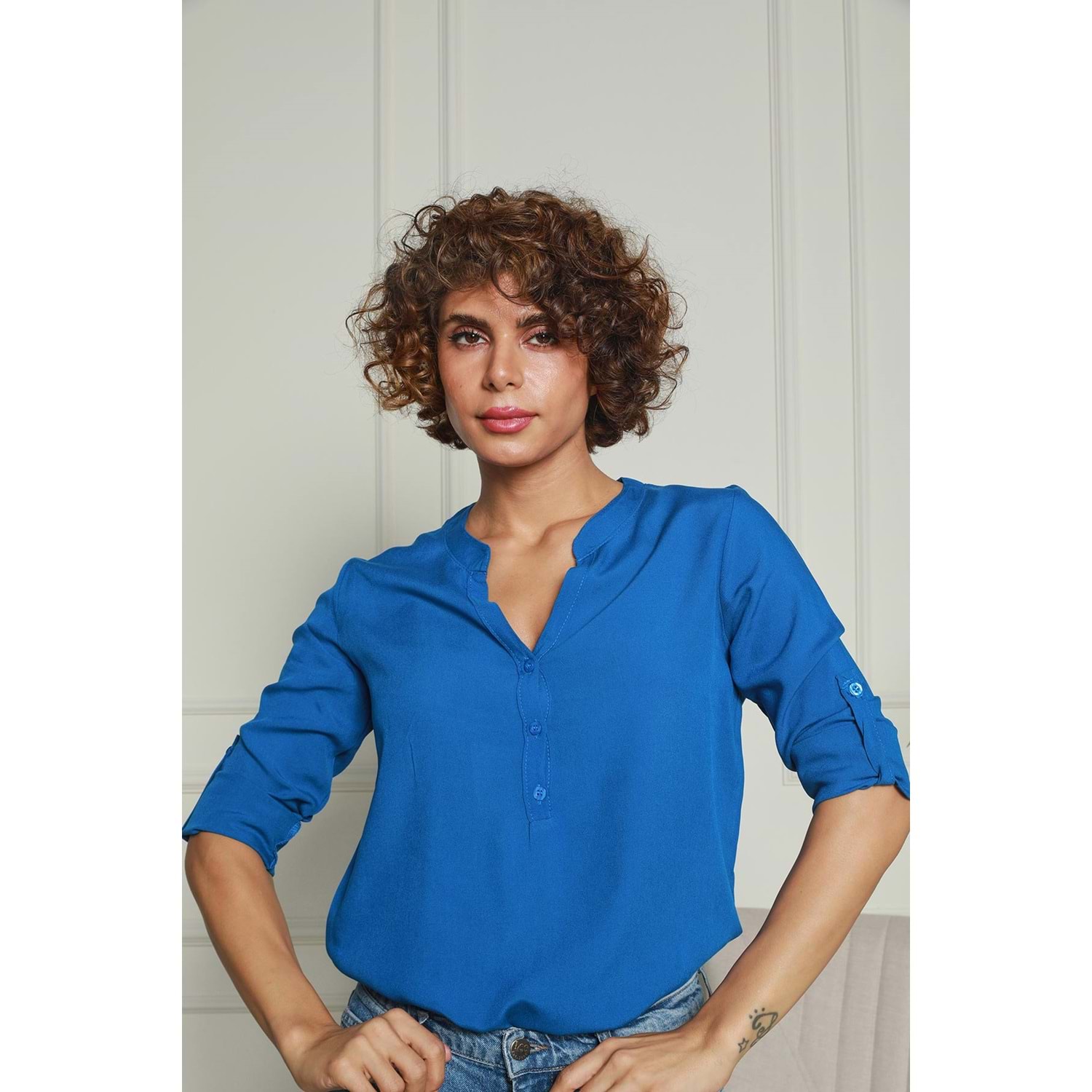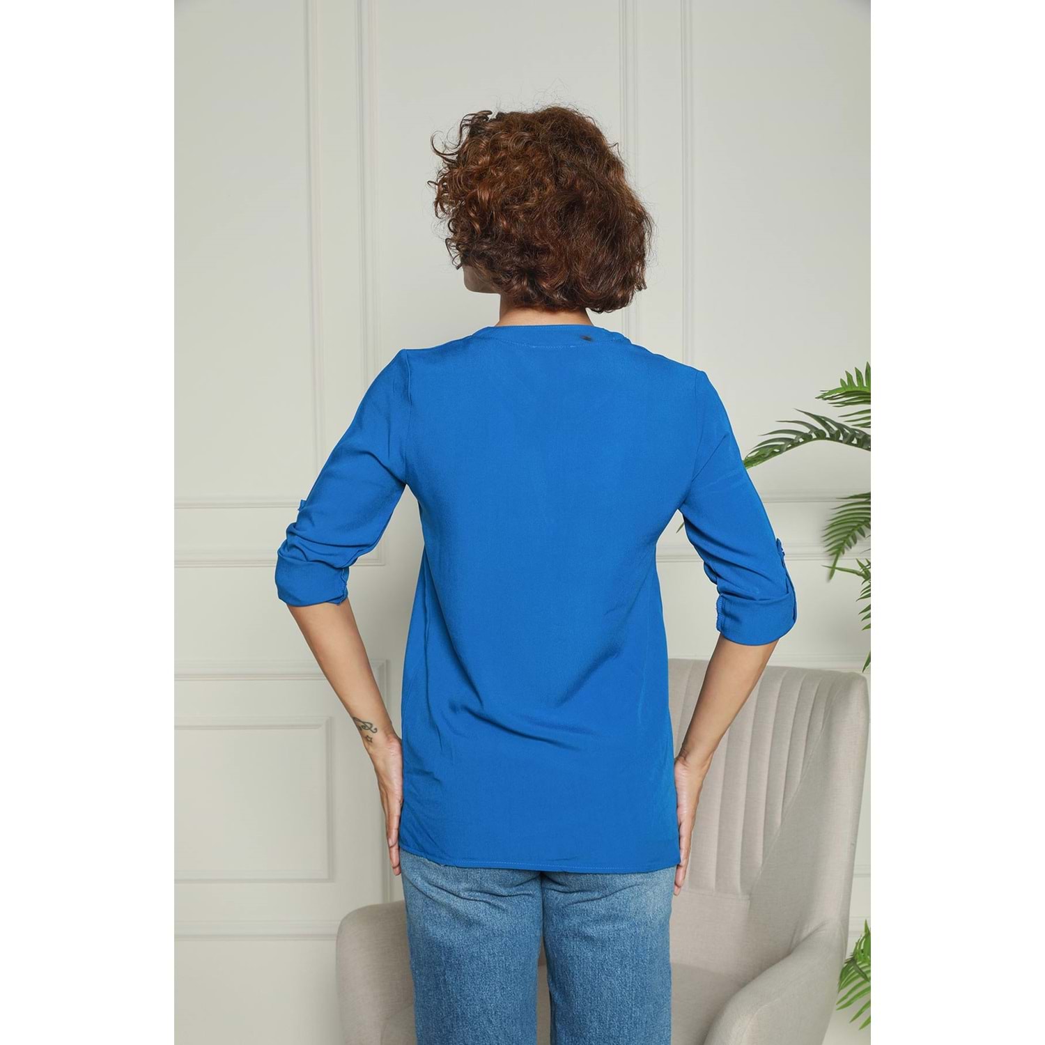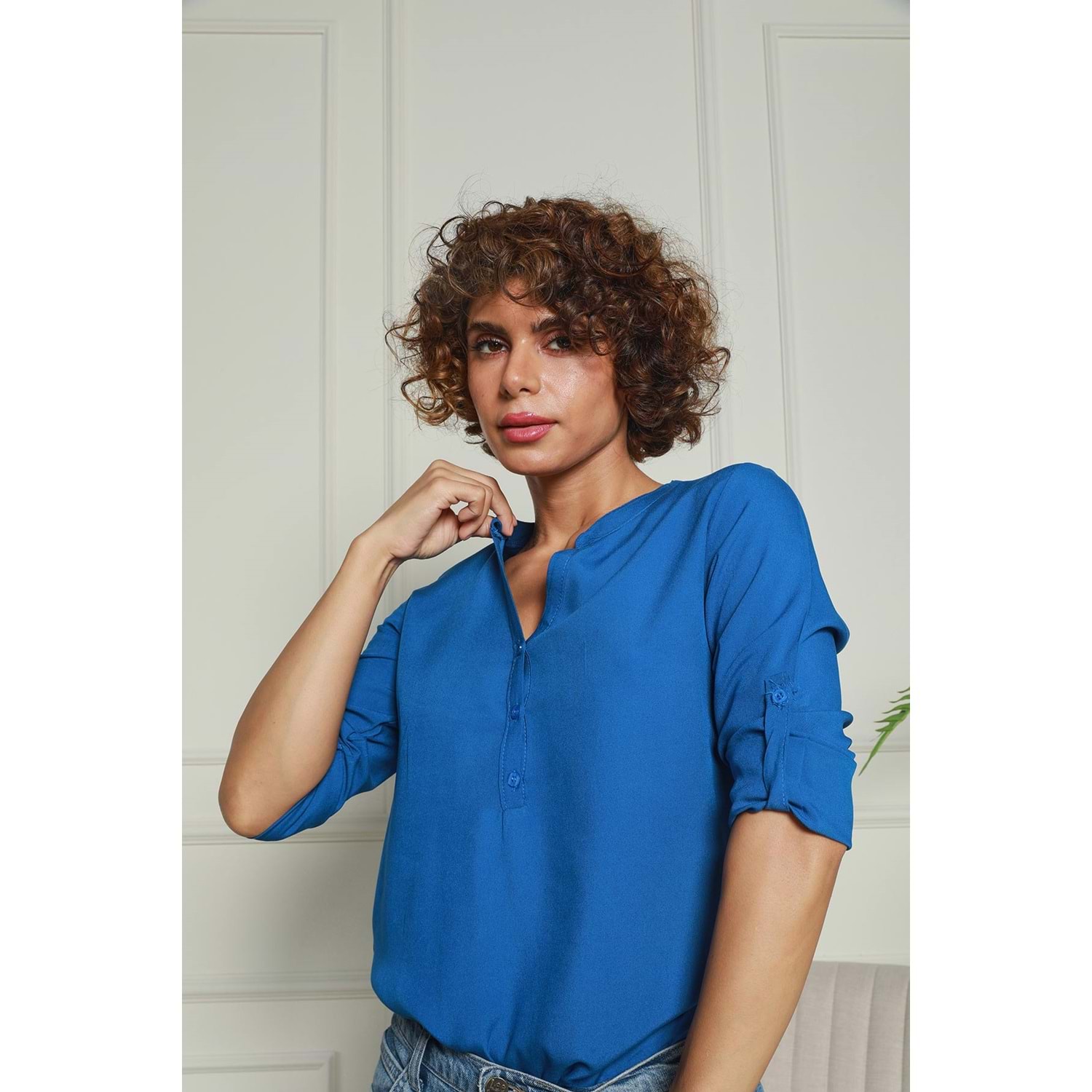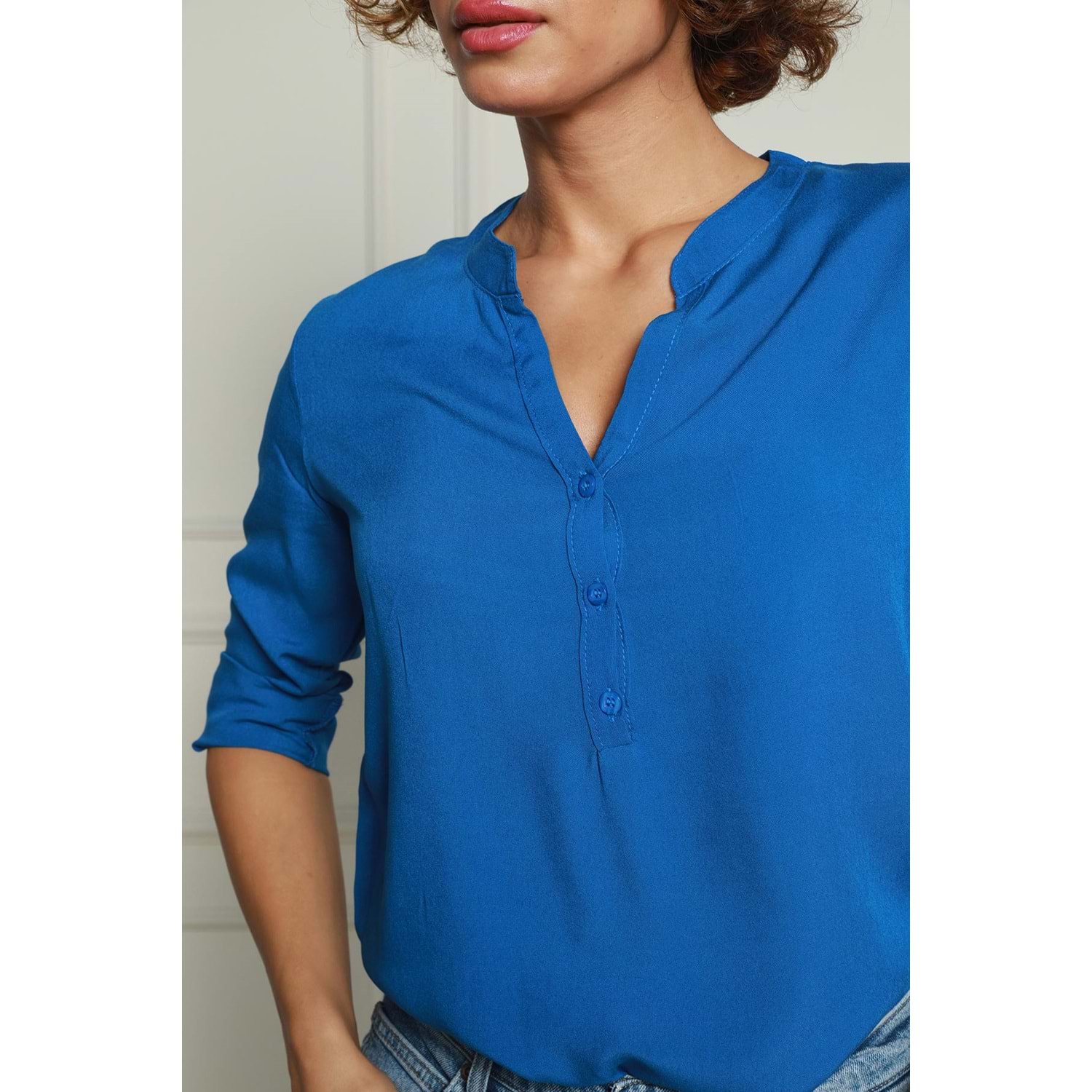 Lacivert Hakim Yaka Yarım Patlı Viskon Gömlek 1500064